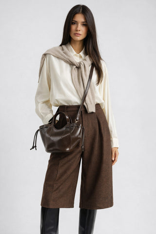 ✔️ Oversize beyaz gömlek + kumaş pantolon + siyah mat deri omuz çantası ✔️ Takım elbise + rugan kahverengi el çantası ✔️ Triko elbise + zincir askılı lacivert çapraz çanta ✔️ Oversize blazer + laptop uyumlu bej el çantası
